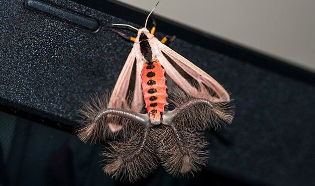 雄の蛾はフェロモンを振り撒くために毛深い触手(発香器官, coremata, 通称ヘアペンシル)を出して交尾相手を惹き付ける。
