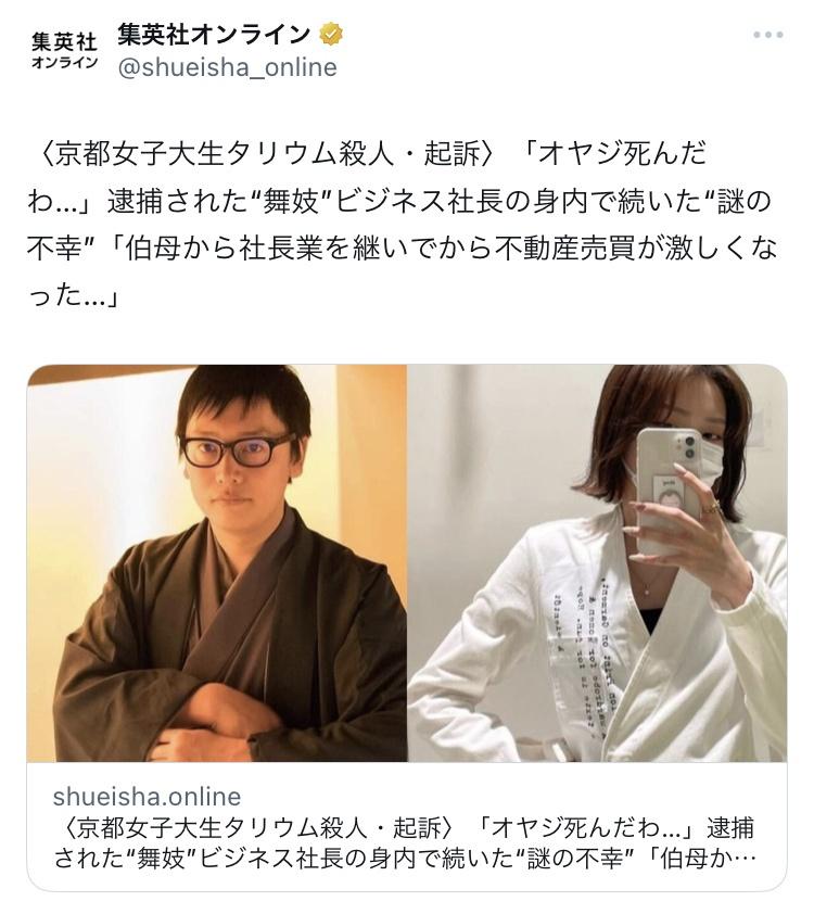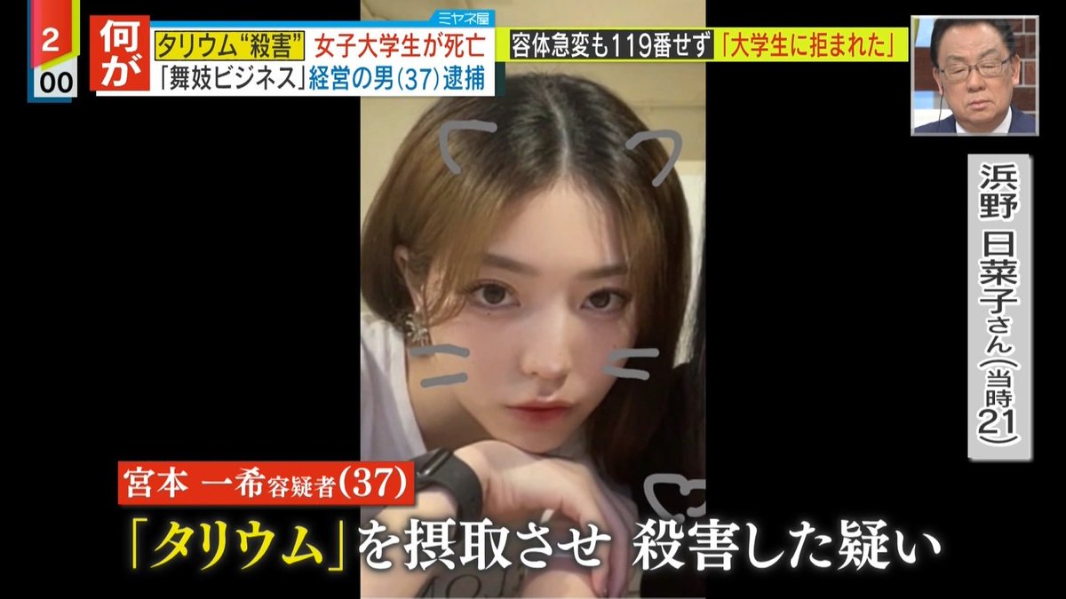 親族は医療機関に入院し、重篤な状態が続いているとされる。容体が急変した当時の様子が浜野さんのケースと似ていたため、府警が女性から採取した微物を鑑定した結果、タリウムが検出された。